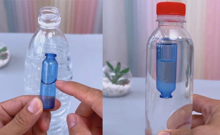 Little science experiment: how to control the sinking and floating of a glass bottle with a plastic bottle?